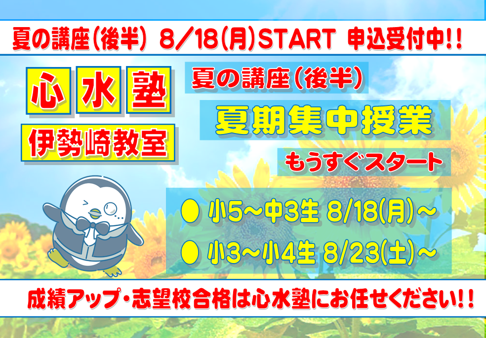 【心水塾 伊勢崎教室】夏の講座(後半)8/18(月)START 申込お急ぎください。