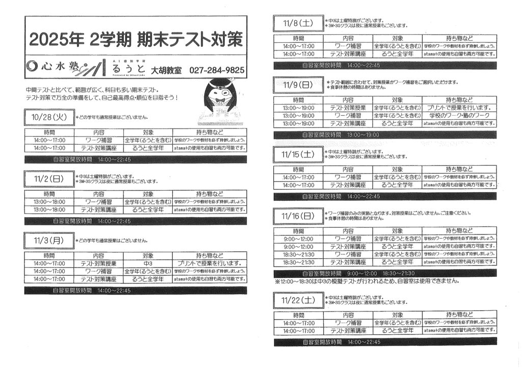 2学期期末テスト対策まだまだ続きます。るうと大胡教室です。