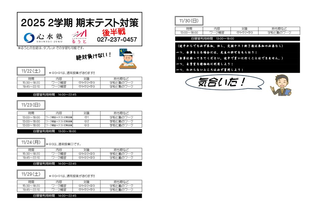 また、11/22・23・24・29・30の5日間で、対策後半戦を実施します!