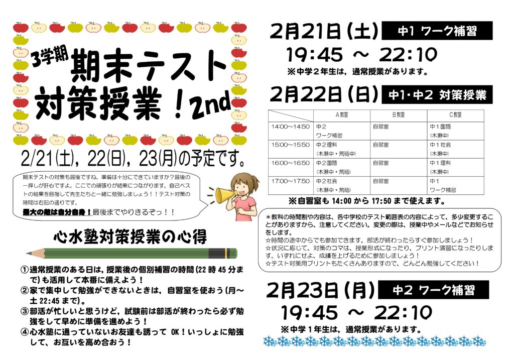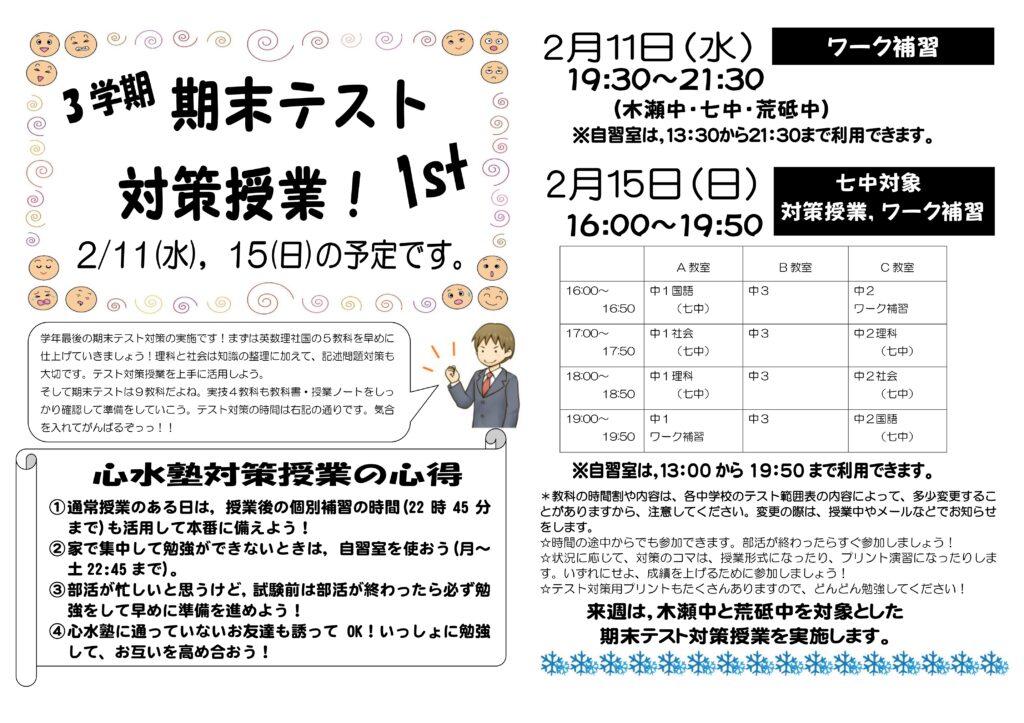早いもので、もう3学期末テストの時期となりました。